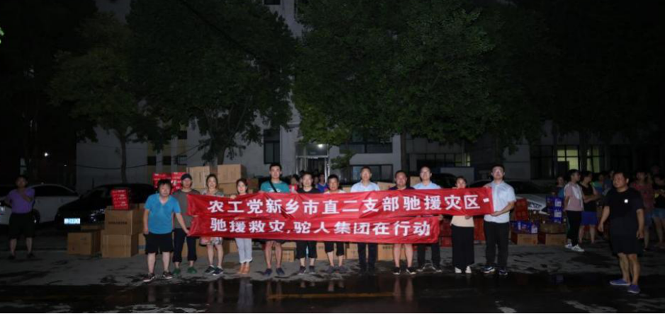 农工党新乡市直二支部联合驼人集团助力防汛救灾。7月24日晚上,农工党新乡市主委张帆、新乡医学院第一附属医院党委书记赵国安、农工党党员魏文昌、驼人控股集团副总裁徐振峰、驼人集团交付代表陈广亮,积极参与防汛救灾活动,第一时间向新乡医学院第一附属医院捐赠价值4万余元的饮用水、方便食品、医用耗材等灾区急需物资,用于医院救助和疫情防控工作。接下来,市直二支部和驼人集团也将持续关注,与相关机构保持紧密联系,为抗汛救灾贡献更多力量。